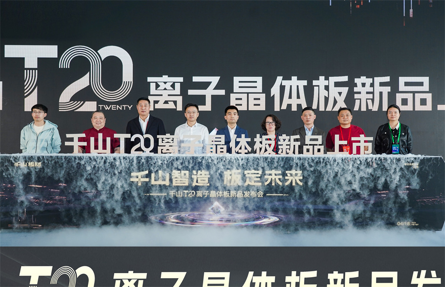 4月18日,中國(臨沂)全屋定制暨供應鏈展覽會在臨沂國際會展中心正式開幕。在1號館“千山智造 板定未來”的舞臺上,千山板材T20離子晶體板及2025新品花色重磅發布,以新產品、新工藝、新花色,為終端提供更有價值空間、更具競爭力的高端產品,助力消費者開啟高顏美家新體驗!千山集團副總經理王松、南京林業大學材料科學與