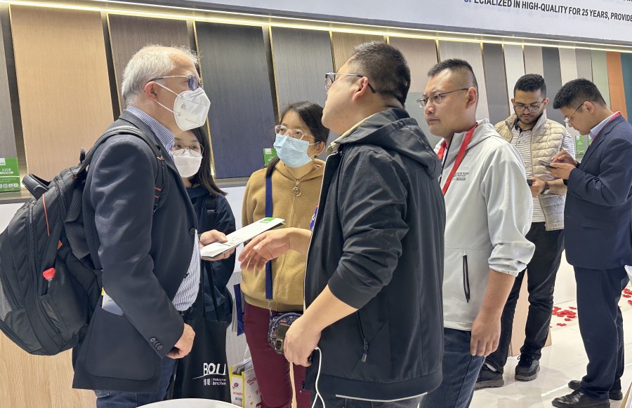 千山作為高端家具板倉儲運營品牌,旗下家具板產品備受矚目,此次展會精彩再燃,為大家呈現一場非凡的家居產品體驗!展會現場,吸引了諸多觀展客戶前來洽談咨詢。