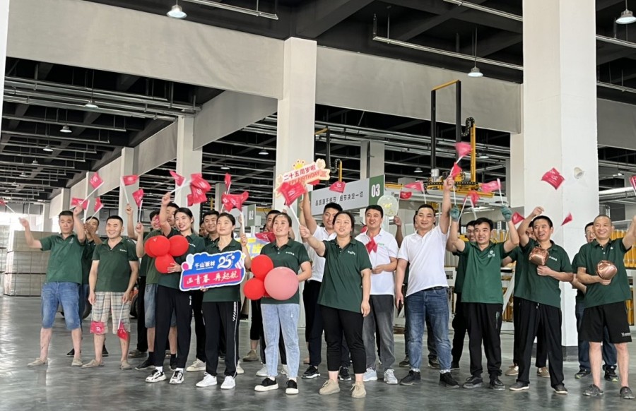 “祝千山25周年生日快樂”、“時(shí)尚潮派衣柜 就選千山板材”的嘹亮口號響徹活動(dòng)現(xiàn)場,大家意氣風(fēng)發(fā),自信昂揚(yáng),展現(xiàn)了千山人新時(shí)代踔厲奮進(jìn)、拼搏進(jìn)取的精神。