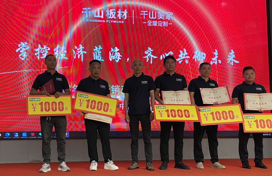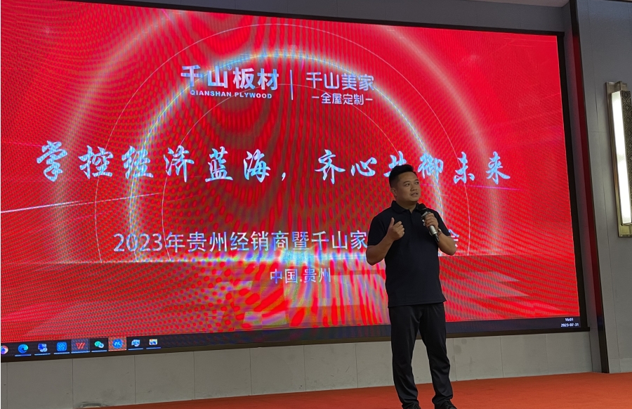 7月31日,千山2023年貴州經銷商暨千山家具板招商會在貴陽隆重啟幕。本次大會以“掌控經濟藍海 齊心共御未來”為主題,進行產品培訓、優秀經銷商頒獎、政策宣講等多項活動。100余名貴州經銷商、家具廠大咖齊聚,聚焦家具板發展趨勢,共商合作。