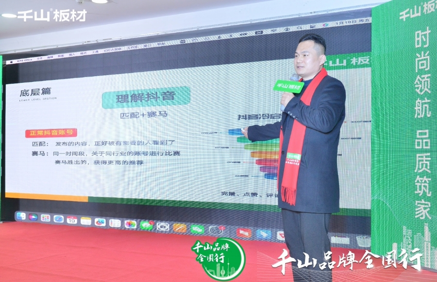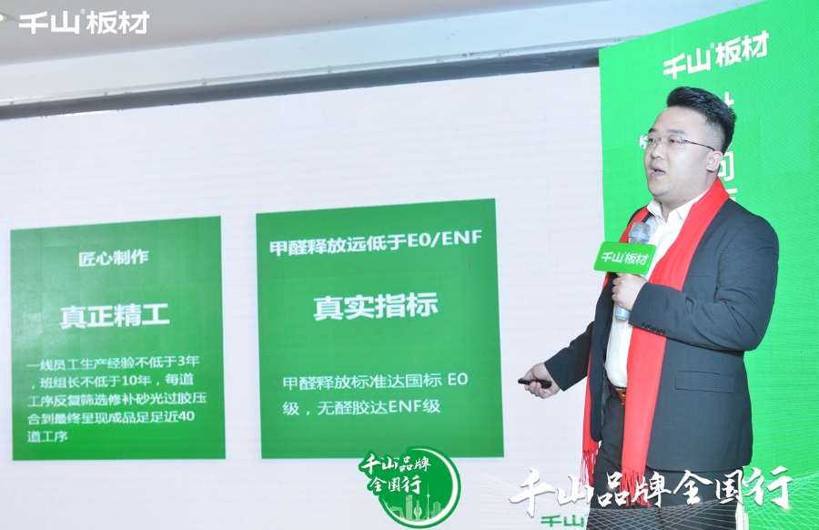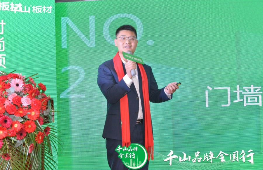 區域經理何成偉帶大家回顧了千山的發展歷程及品牌故事。26年來,千山從單一的板材生產,到膠水、飾面紙等全產業鏈自主生產制造,砥礪深耕,已邁向全國。