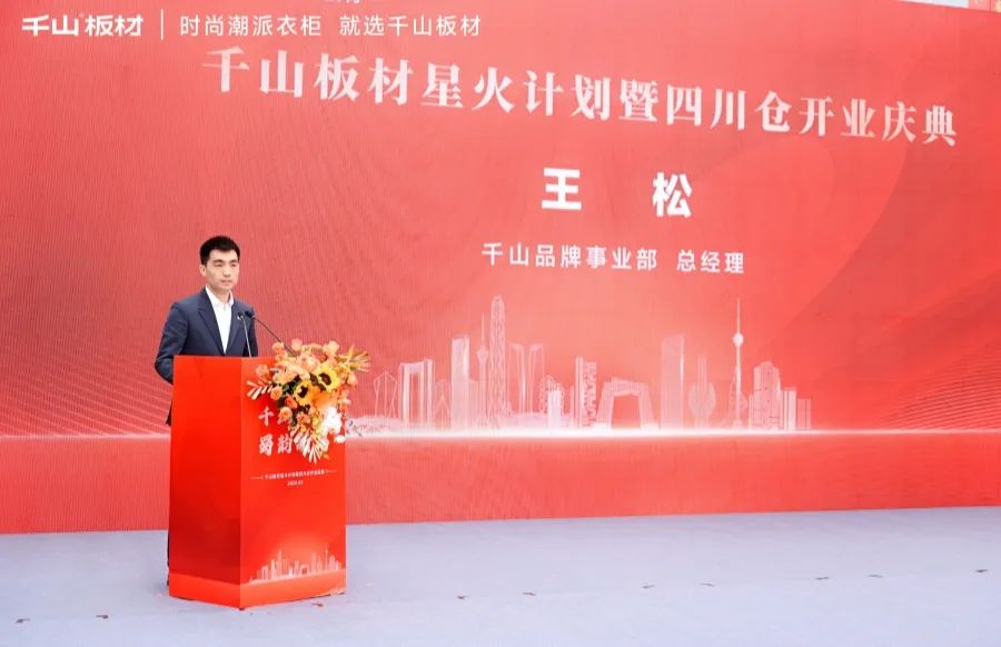 千山品牌事業(yè)部總經(jīng)理王松發(fā)表致辭。王總表示,四川倉(cāng)的開(kāi)業(yè),是繼山東倉(cāng)之后,千山板材發(fā)展歷程中又一重要的里程碑,也是千山板材在四川發(fā)展的全新起點(diǎn)。千山將以此為契機(jī),加強(qiáng)與四川區(qū)域所有合作伙伴的溝通與合作,實(shí)現(xiàn)品牌和銷(xiāo)量的雙提升。