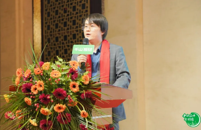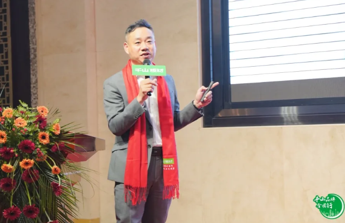 千山品牌事業(yè)部品牌總監(jiān)朱英翔致辭。朱總表示,千山致力于“成為全國知名的家居、裝飾材料優(yōu)秀綜合運營服務商”,堅持樹立品牌形象,加強品牌拉力,也將攜手全國的合作伙伴,開辟新增長曲線。