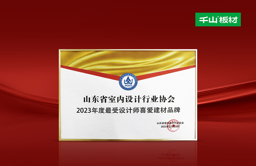 1月27日,「設計圈兒」歲序雅集設計大會暨山東省室內設計行業協會年度慶典活動在山東濟南盛大啟幕,千山板材榮膺“2023年度最受設計師喜愛建材品牌”。