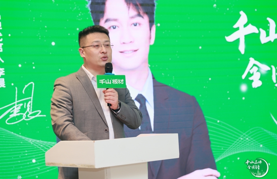 千山板材銷售部總監董向陽致辭。董總分享了家居產品的市場趨勢以及千山在產品體系升級、品牌競爭力、專賣店建設等多個維度的發展,也將整合資源,全方位賦能經銷商,加強與裝企伙伴的合作。
