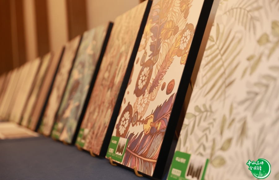 簽到結束后,大家仔細參觀了千山板材展示區的全品類產品,包括四大品類板材、新款樣冊、門墻柜一體化產品、配套輔材等。大家相互交流,分享產品應用心得。