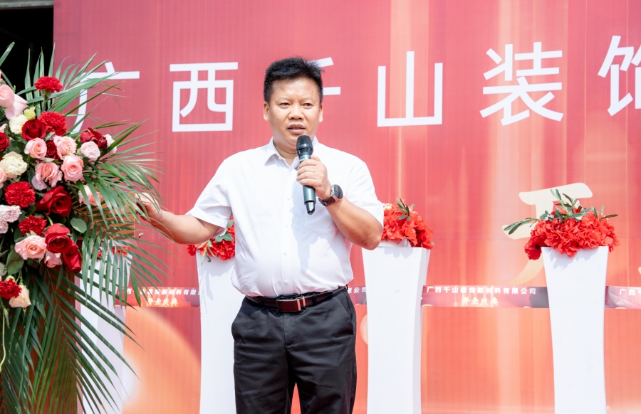 隨后,廣西千山裝飾新材料有限公司總經理邵廣峰發表講話。邵總表示,廣西生產基地將秉承集團的發展宗旨,在政府和協會的領導下,整合利用市場資源優勢,加強管理、提升技術,以高昂的熱情積極投身于各項生產經營活動,助力集團的高質量發展,同時為推動行業的發展作出應有的貢獻。
