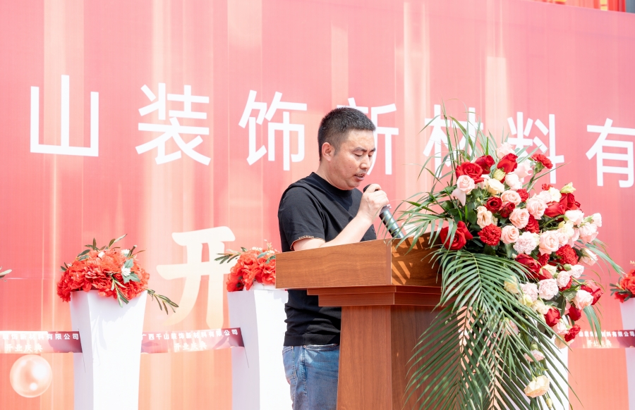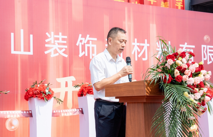 慶典現場,融安縣人民政府副縣長陳遠昭、融安縣工業集中區管理委員會副主任藍代勛、融安縣香杉協會秘書長韋軍先后致辭,為廣西千山裝飾新材料有限公司的正式開業表示熱烈的祝賀,并送上了美好的祝福。