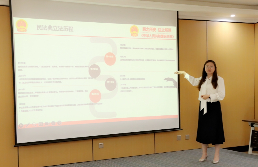 王嘯云律師從編纂背景、立法歷程等方面對(duì)《民法典》進(jìn)行詳細(xì)解讀,讓大家對(duì)《民法典》的法律條文有了更加直觀、全面的理解。同時(shí)對(duì)企業(yè)經(jīng)營活動(dòng)以及與客戶業(yè)務(wù)往來中需注意的法律問題、風(fēng)險(xiǎn)防控點(diǎn)進(jìn)行重點(diǎn)闡述。
