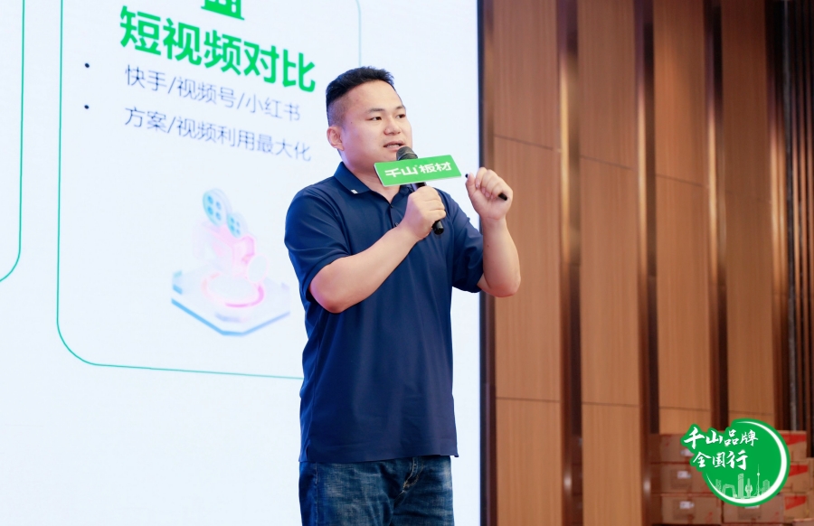 千山板材品宣經(jīng)理張新江分享了《短視頻同城獲客系統(tǒng)》,為合作伙伴們提供了有效的線上拓客策略。通過以抖音為代表的短視頻平臺(tái),終端門店可以更好地展示產(chǎn)品特點(diǎn),吸引線上潛在客戶,提高品牌曝光度,助力我們贏戰(zhàn)市場(chǎng)。