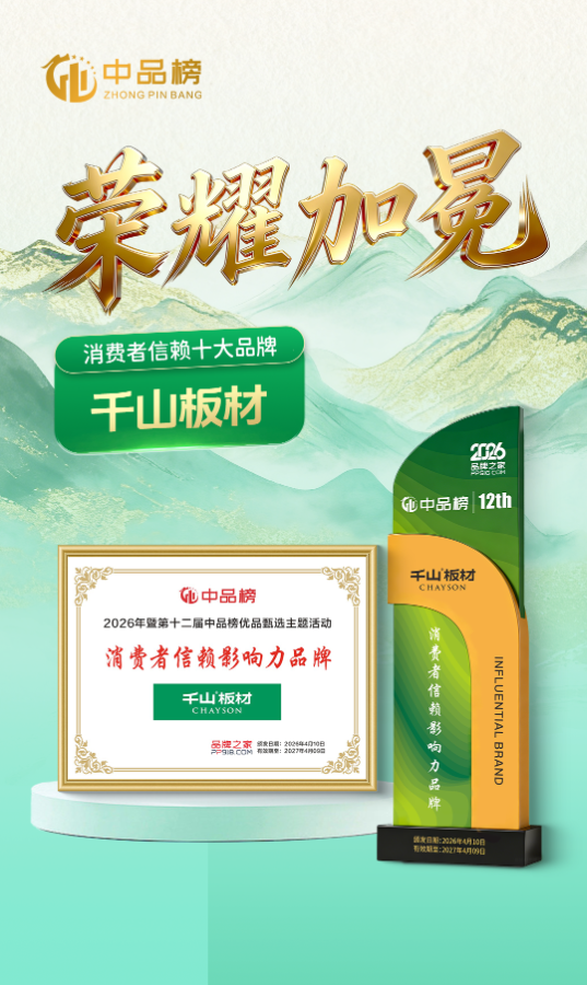 正因如此,千山連續(xù)多年榮獲“消費者信賴十大品牌”稱號。這份榮譽,源于每一張訂單的準時交付,源于每一塊板材的品質(zhì)如一,更源于萬千家庭對千山品牌的長期認可。千山將以此為鞭策,繼續(xù)以誠立信、以行踐諾,不負每一份托付。