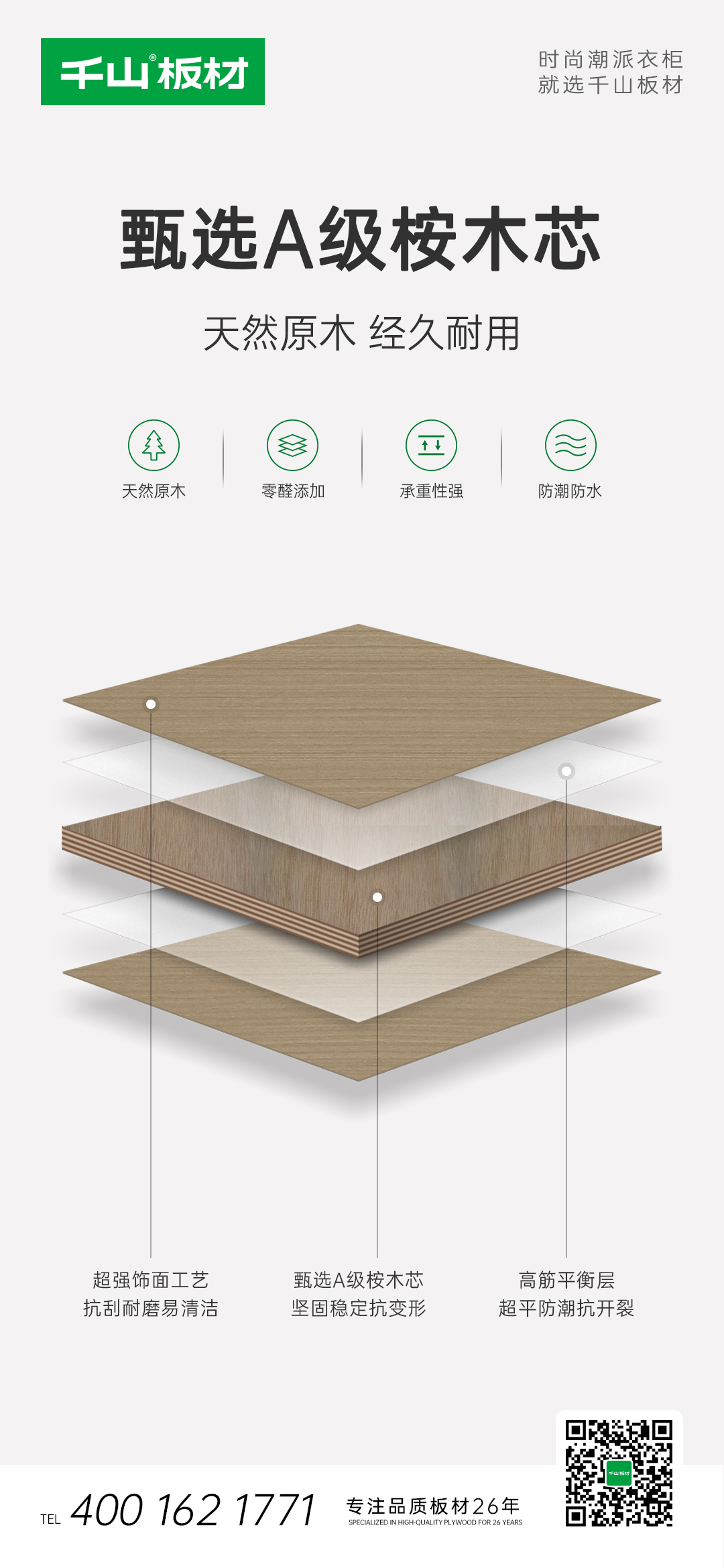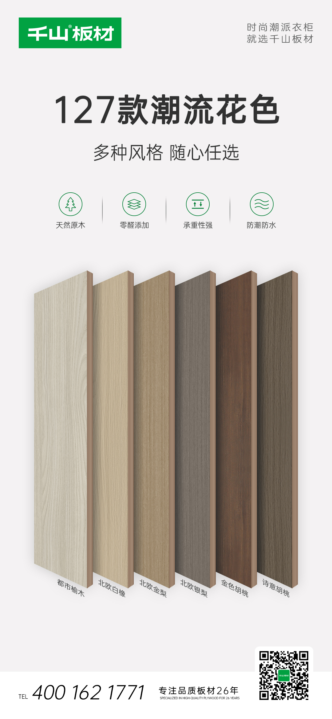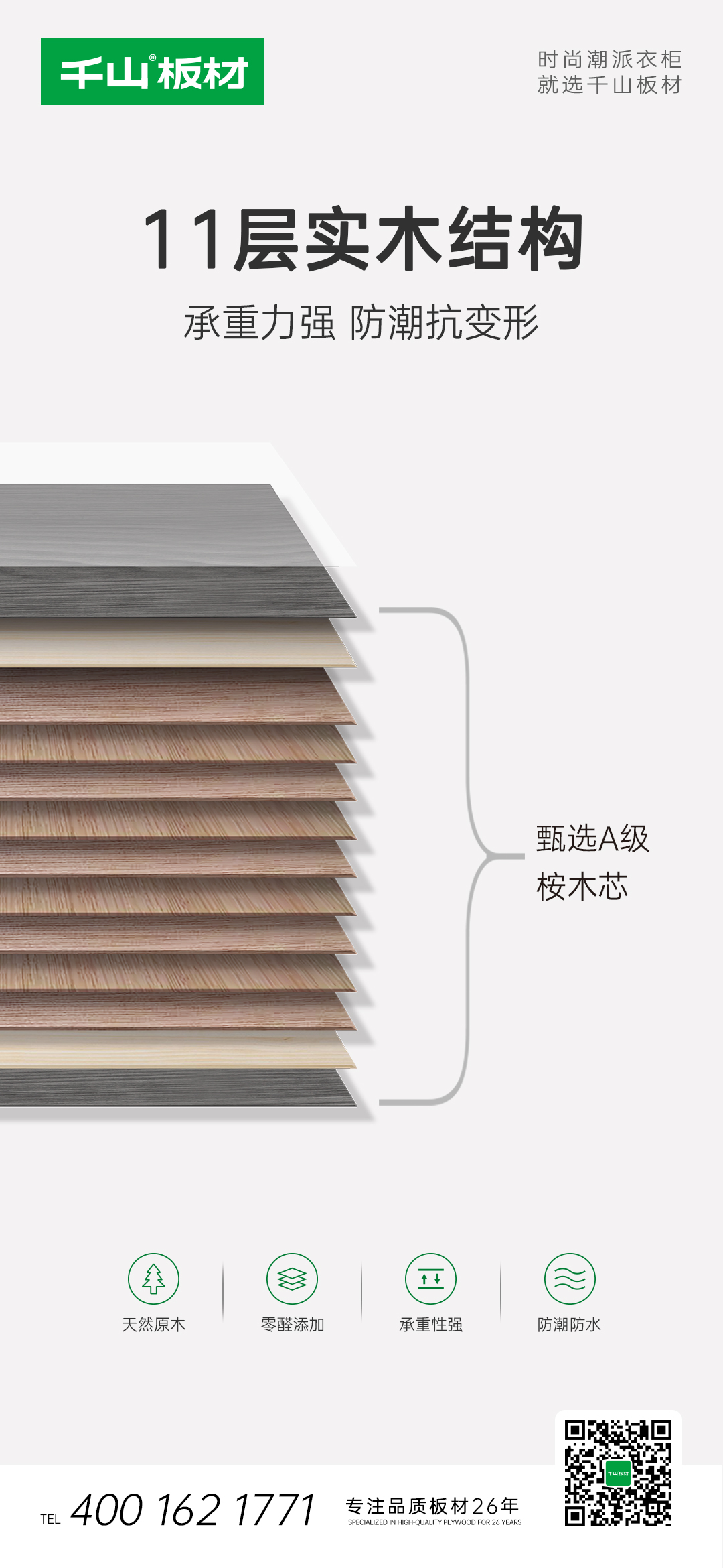 千山板材實木多層板以高環保性、高穩定性、高防潮性等多重領先優勢,滿足千萬家庭對品質的更高要求。歡迎光臨當地千山板材品牌專賣店選購。