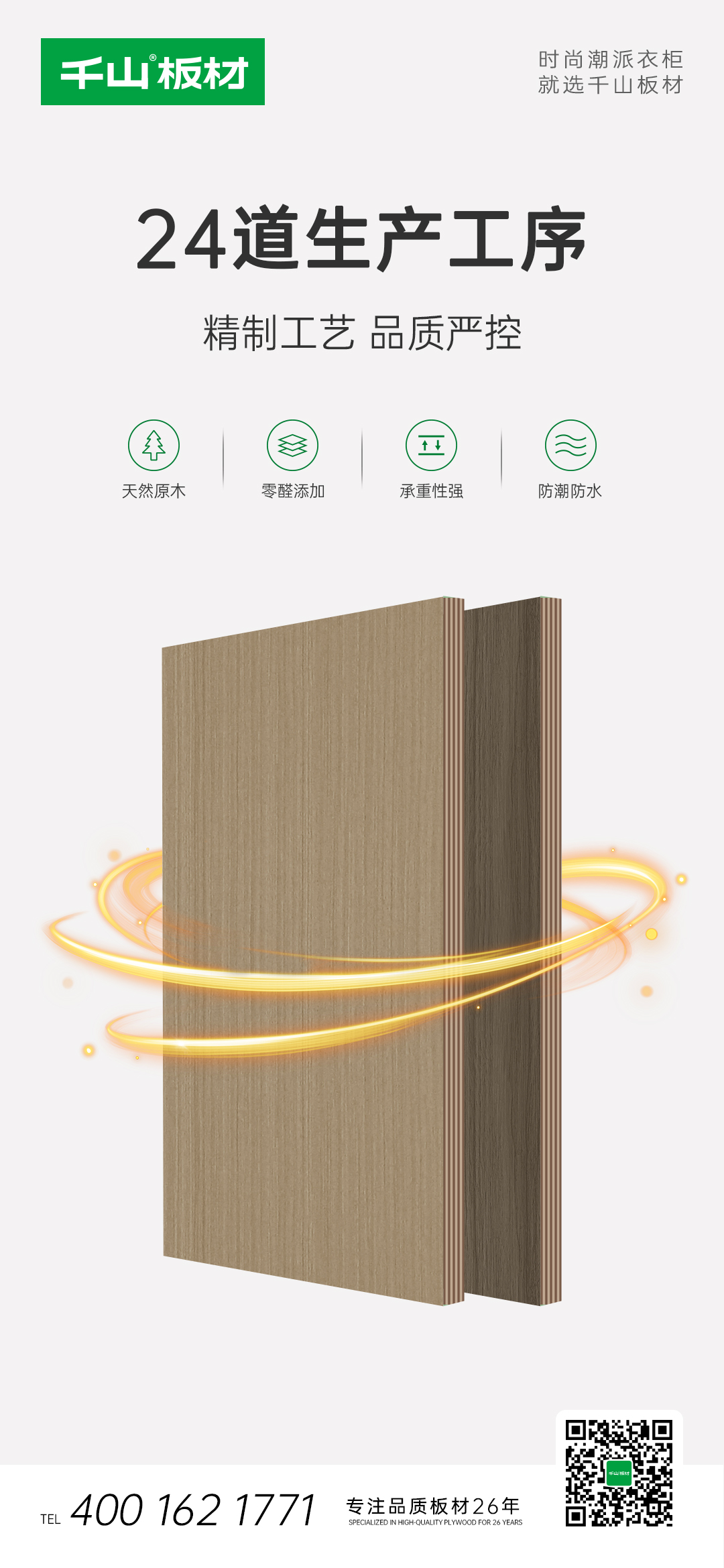 好的背板不但可以讓柜子更加穩固,還可以起到防潮防霉的作用,所以背板的使用至關重要。千山板材實木多層背板配置4.6厘/5厘/7厘/9厘等多種規格,充分滿足多樣化的產品需求。