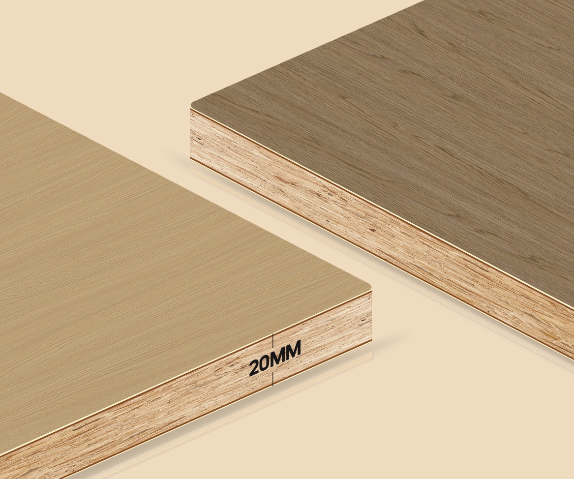 采用成熟大徑桉木,只保留純凈原木芯材,具有密度大、硬度高的穩定物理特,20MM厚度加持門板的高承重、抗變形力。