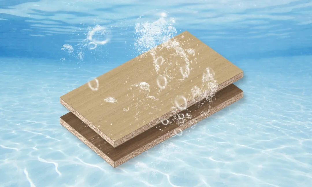 經(jīng)P6防潮性能檢測,千山全能板(實(shí)木大刨片)在70度水中浸泡2小時(shí)后仍能保持良好性能,適合潮濕環(huán)境使用,有效防止受潮變形、發(fā)霉等問題。