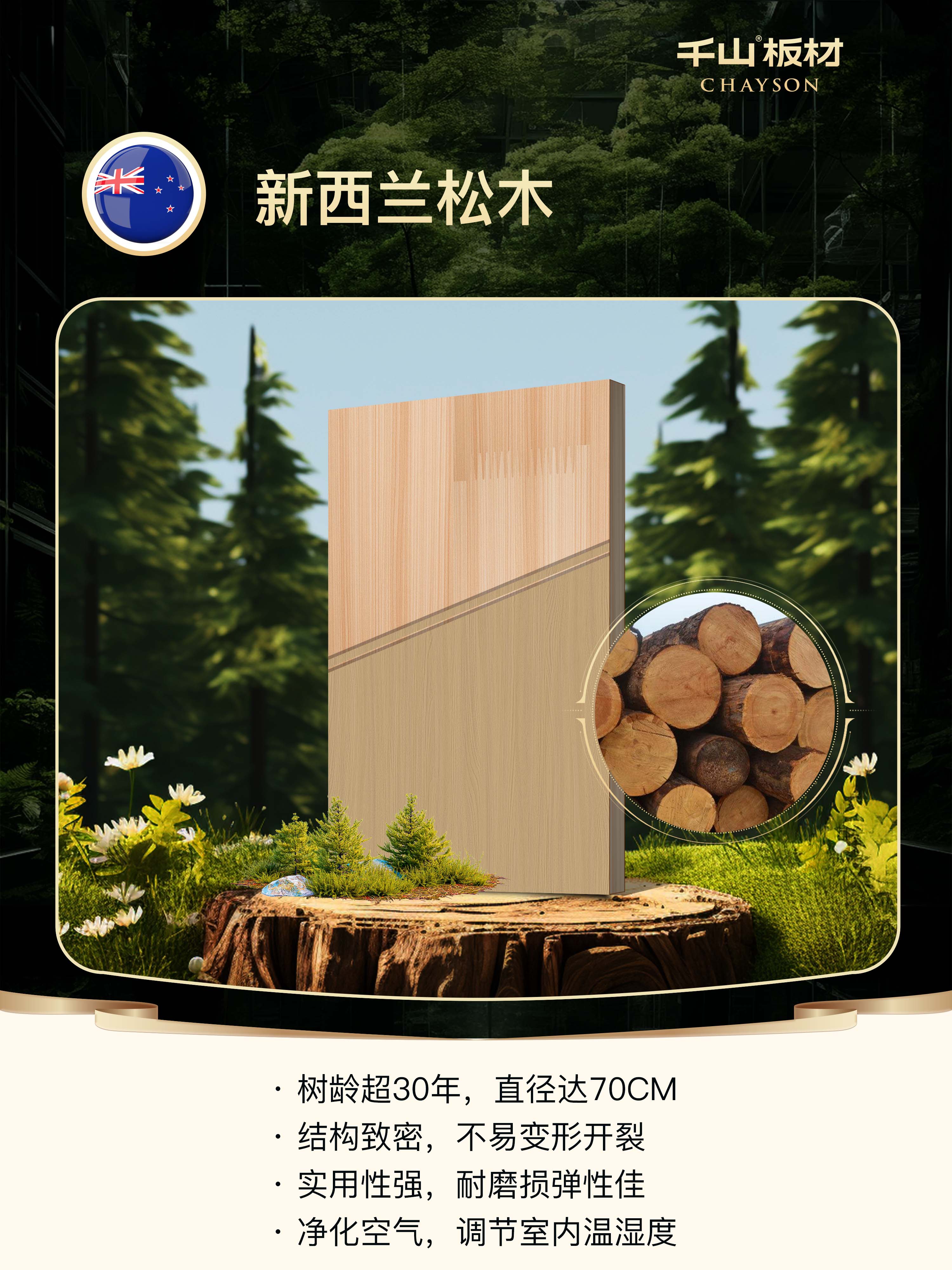新西蘭松木樹齡超30年、直徑達70CM,結(jié)構(gòu)致密,不易變形開裂,耐磨損且彈性佳,實用性強,穩(wěn)定性大幅提升。