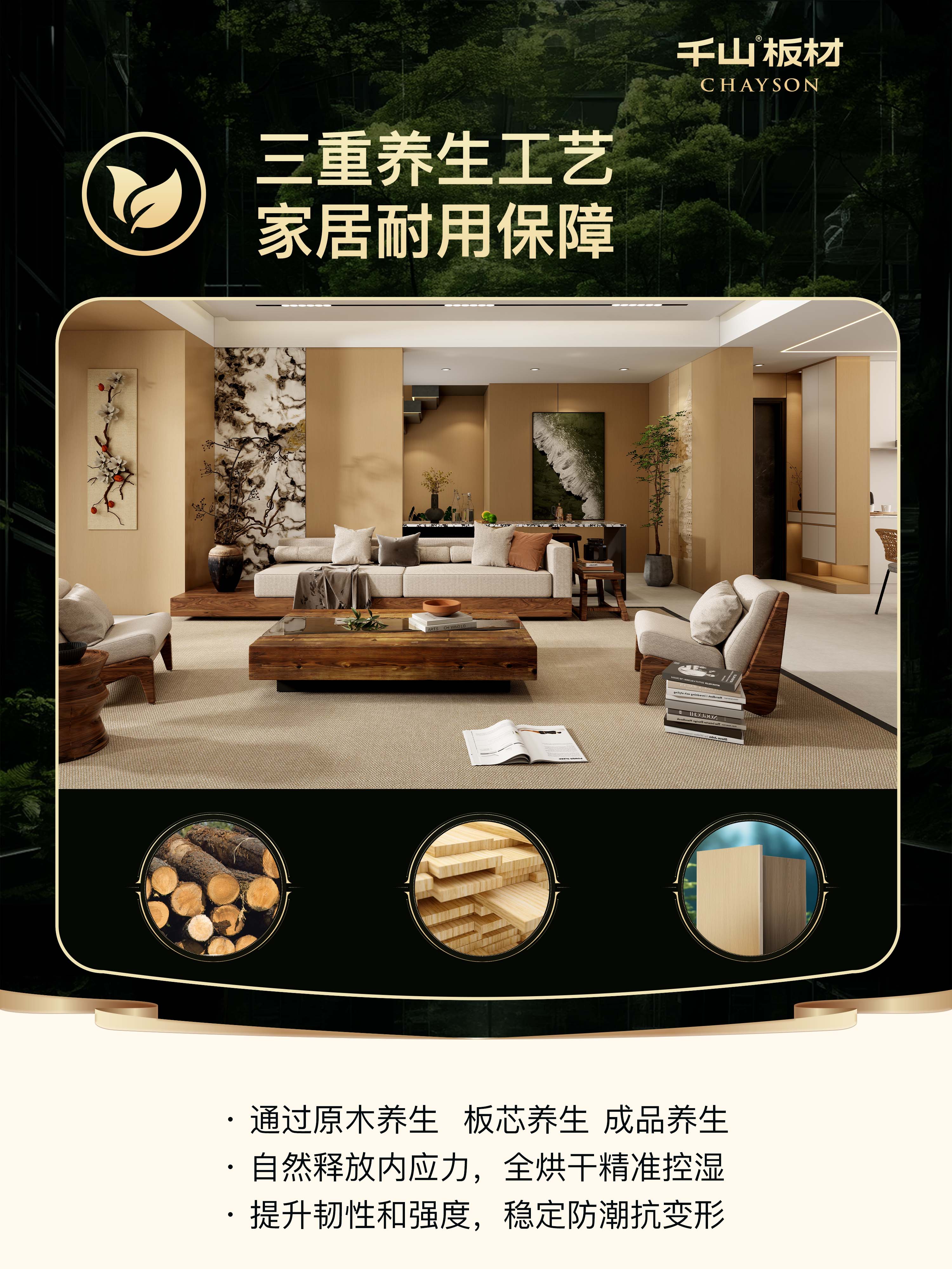 千山原木板質(zhì)地天然,綠色0醛0苯添加,環(huán)保達采暖HENF級,融入凈醛、抗菌、抗病毒功能工藝,讓家不止于美觀,更是一方安心健康的守護。